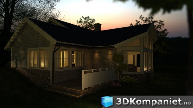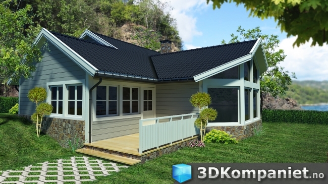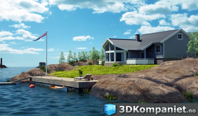 3d visualisering av hytte ved havet